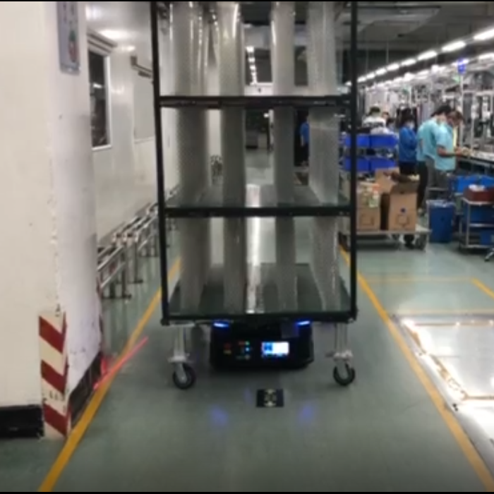 3C自主搬運AMRLED燈4條生產(chǎn)線。料儲為相應(yīng)物料加工站位料車上的整車物料。AMR自動移入料車托盤并舉升,自動調(diào)整方向并將料車逆時針(參考)輸送到各產(chǎn)線物料投放站位;自動將托盤上的空料車舉升,逆時針(參考)繞行回到相應(yīng)物料加工站位。
