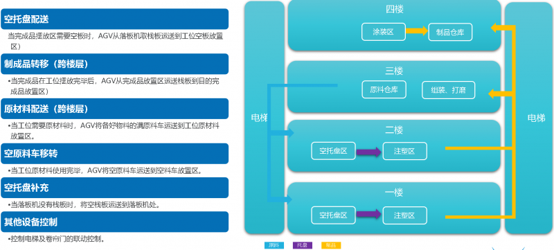 用AGV調(diào)度系統(tǒng)(VConn)完成物料計(jì)劃下發(fā),現(xiàn)場(chǎng)叫料之間的系統(tǒng)閉環(huán),考慮到異常送料需求,系統(tǒng)保留人工呼叫接口,可以快速與第三方系統(tǒng)或設(shè)備對(duì)接