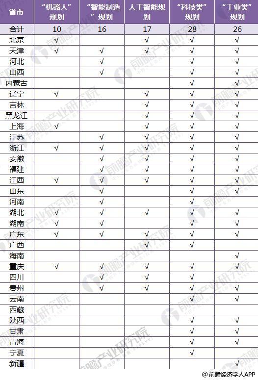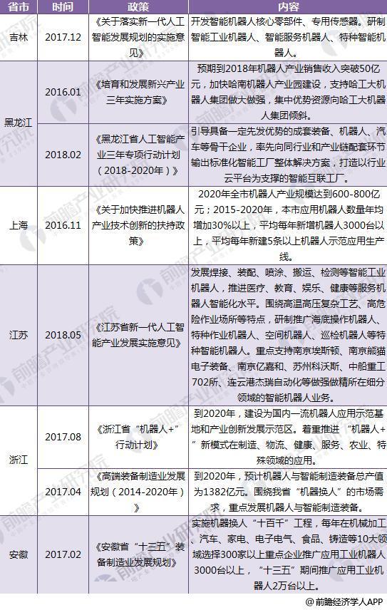 截至2018年31省市機器人政策匯總及解讀