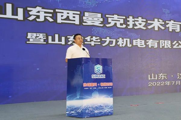 山東華力機電有限公司董事長郭永旭先生發(fā)表致辭,對出席慶典的各位嘉賓表示熱烈的歡迎。郭董提到,山東西曼克技術(shù)有限公司在高書記、李縣長等縣直各部的大力支持下終于在今天建成開業(yè)投產(chǎn),該項目第一期新建高標(biāo)準(zhǔn)廠房70000平方米,即將開建的第二期工程再建高標(biāo)準(zhǔn)“員工之家”樣式的廠房106000平方米,預(yù)計明年的今天建成投產(chǎn)。郭董對華力機電公司從2011年至今的發(fā)展與成就進(jìn)行了總結(jié),他指出,華力機電從銷售收入只有1億元,通過十年的拼搏到20年實現(xiàn)銷售收6. 8億元,產(chǎn)品也在不斷地更新?lián)Q代,新技術(shù)新產(chǎn)品不斷涌現(xiàn),并且得到了良好的市場應(yīng)用。郭董表示,隨著西曼克公司的新廠落成開業(yè),有決心有信心更有底氣,把機器人產(chǎn)業(yè)做強做大,用優(yōu)異的成績,來回報各位領(lǐng)導(dǎo)、各位客戶、各位供應(yīng)商和各位朋友的大力支持。