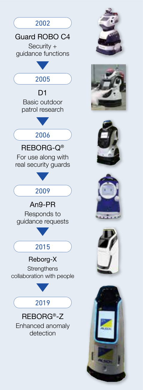 ALSOK 成立于1965年7月,是日本的一家大型安保公司。該公司早在1982年就預見到,未來將會面臨老齡化社會引起的勞動力不足問題,開始著手研發自主安保機器人,以提高勞動密集型的駐扎保安服務效率。