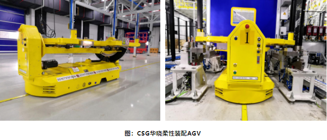 該項目采用先進的柔性化裝配理念,可實現零件集配、上件、分裝、下件全流程,真正做到零件運輸流、產品裝配流、成品下線流“三流合一”。CSG華曉結合動力電池PACK的工藝要求,設計建造了集零件集配、物料配送、動、靜態測試、成品下線于一體的柔性化裝配線,并且依據人體工程學首創翻轉式AGV,該型AGV可根據不同工位的不同工藝需求,自動翻轉工件,節省裝配人員5名,提高了15%的運轉效率。