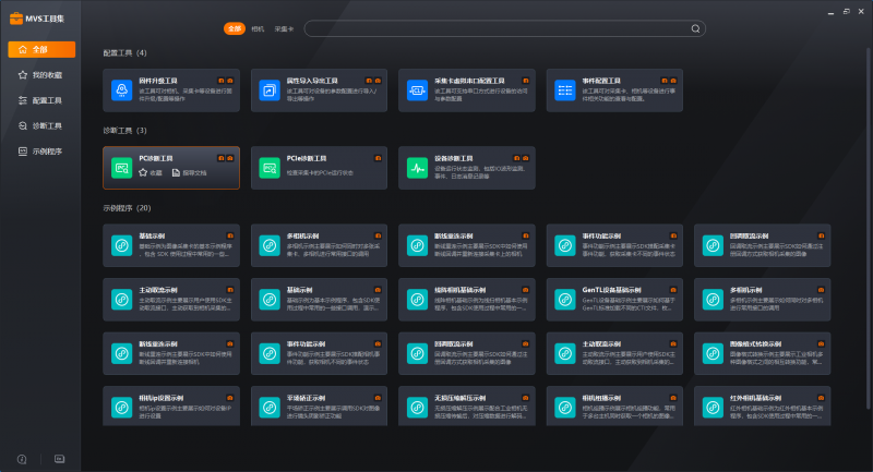 全新推出的MVS工具集軟件提供多達(dá)7種常見工具和20種示例程序的合集,方便用戶快速查找。