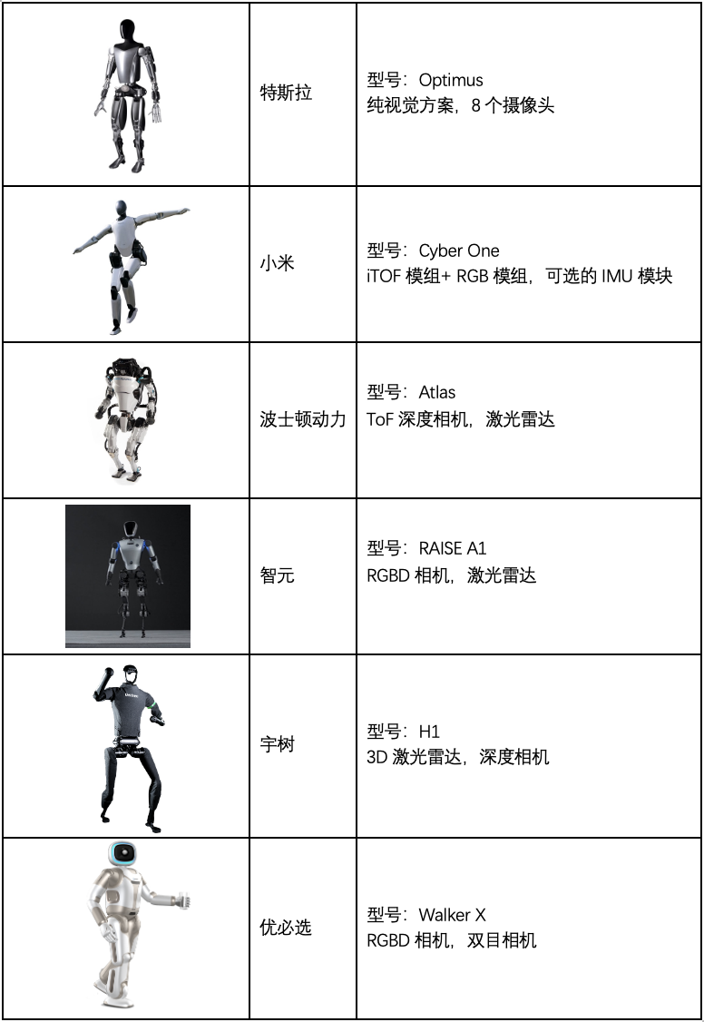 主要人形機器人視覺傳感器方案對比