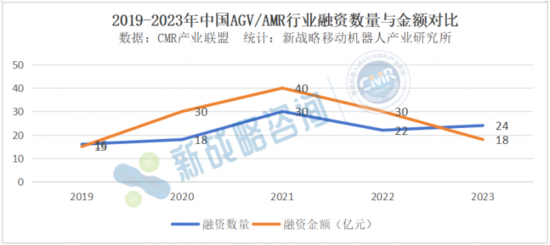 根據CMR產業聯盟數據,新戰略移動機器人產業研究所統計,2023年,中國AGV/AMR領域共發生24起融資事件,融資總額累計超過18億元。