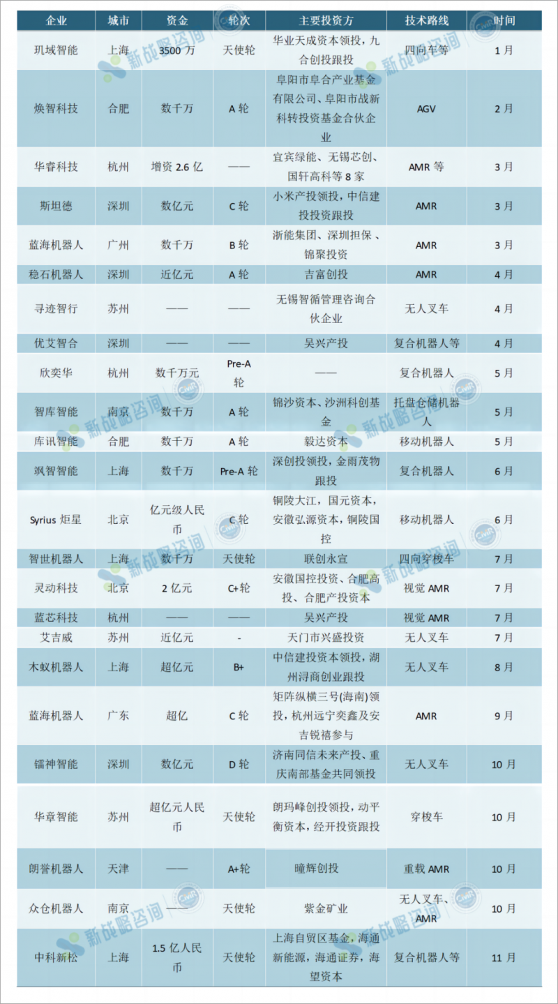 2023年AGV/AMR行業融資情況一覽:共24起,累計金額超18億