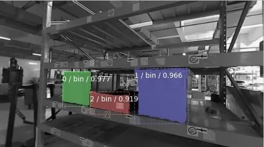 通過TOF相機(jī)對(duì)貨架上的料箱進(jìn)行識(shí)別定位,引導(dǎo)CTU機(jī)器人夾取料箱;相機(jī)內(nèi)部對(duì)料箱完成深度學(xué)習(xí)實(shí)例分割,結(jié)合深度信息完成精準(zhǔn)定位;可兼容不同顏色、材質(zhì)、工況的料箱,適配工作距離與角度范圍廣,邊緣誤差<2mm,角度誤差<0.2°。