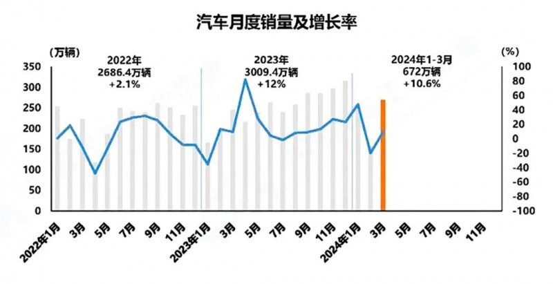 汽車行業作為移動機器人的主要市場之一,其發展趨勢及需求情況對移動機器人行業具有重要的影響。根據中國汽車工業協會的數據,2024年一季度,我國汽車產銷分別完成660.6萬輛和672萬輛,同比分別增長6.4%和10.6%。其中,中國汽車出口量達到132.4萬輛,同比增長33.2%,創下2019年以來一季度最高值。汽車行業經濟運行起步平穩,實現良好開局。