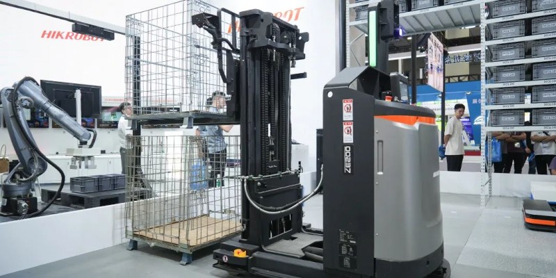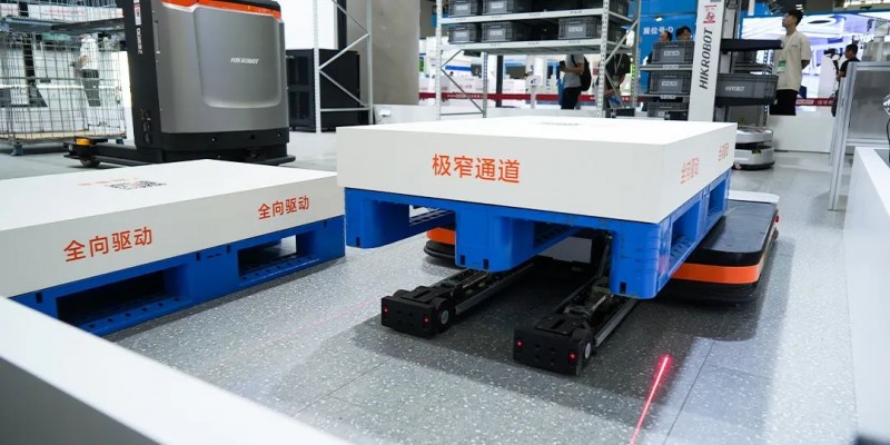 本次展會展出的是海康機器人全新一代的前移式叉取機器人,前移門架的設計,減少運載空間,提高運載速度。同時具備物料識別功能,可適配各種類型載具。取放精度高,支持物料自動堆疊和拆垛,提高作業效率。