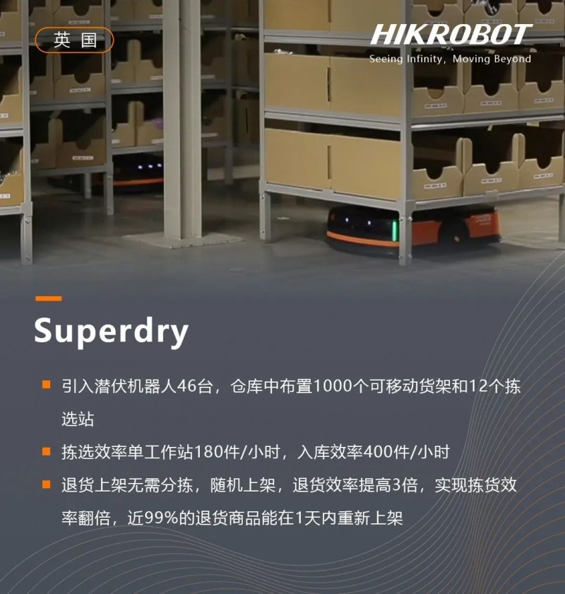 針對流通行業的業務波動量大、效率要求高、業務容錯率低、庫容要求高等核心難題,結合豐富的產品線和解決方案、智能算法等全場景規劃能力,海康機器人為行業伙伴打造了高坪效、高人效、高柔性的解決方案,覆蓋電商零售、鞋服、煙草酒水、商超、圖書出版、3PL、醫藥等細分行業。