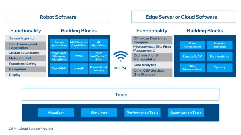 例如,英特爾的Robotics SDK提供了一套全面的軟件算法解決方案,包括視覺同步定位與地圖構建(VSLAM)技術,該技術結合英特爾®實感™(Intel®RealSense™)攝像頭,能夠快速實現自主移動機器人(AMR)的地圖構建和精確定位導航。此外,針對提升群體智能,英特爾推出了多機協同建圖(Collaborative SLAM)的參考軟件,該軟件搭配英特爾研發的特征點提取和匹配算法,顯著提升了在大規模場景中多AMR協同作業的SLAM建圖效率。針對特定應用場景中的地面不均勻或傾斜問題,英特爾還開發了地面分割(Groundfloor Segmentation)算法,確保AMR在復雜地形中的穩定運行和適應性。這些先進的軟件工具和算法,為客戶提供了強大的技術支持,使得AMR能夠更加高效、靈活地部署于各種工作環境。