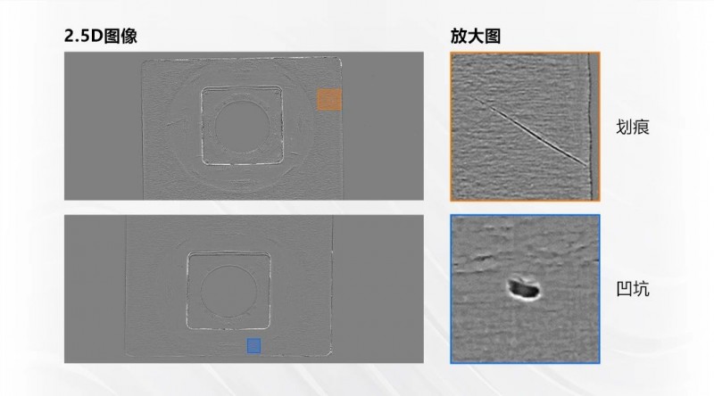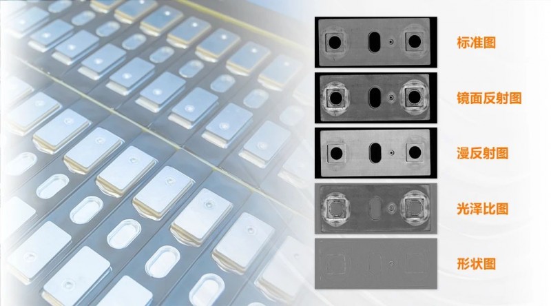 檢測效果:去除表面反光和臟污影響,將有深度變化的缺陷突出;根據臟污與樣品表面的反射特性不同突出臟污缺陷,同時與凹凸等缺陷進行區分