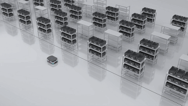 在路徑規(guī)劃與交通管制層面,運(yùn)用多智能體協(xié)作規(guī)劃算法,在面向任意拓?fù)浣Y(jié)構(gòu)、存在任意人為干擾的場(chǎng)景時(shí),通過(guò)動(dòng)態(tài)全局協(xié)同規(guī)劃,實(shí)時(shí)感知?jiǎng)討B(tài)障礙物,自動(dòng)重規(guī)劃避讓路徑,進(jìn)行多機(jī)器人路徑搜索和交通管制,解決多機(jī)型機(jī)器人共線運(yùn)行的擁堵問(wèn)題,令機(jī)器人有效躲避擁堵、及時(shí)預(yù)防和解除死鎖,確保任務(wù)連續(xù)性。