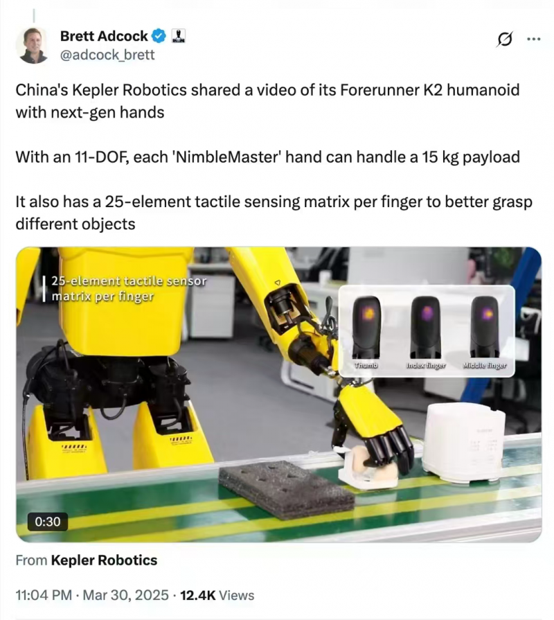 人形機器人究竟是“真風口”還是“行業泡沫”?就在市場對這一領域前景仍存疑慮時,一個意外的認可引起了業內的注意:全球頂級人形機器人公司Figure的CEO親自點贊了一家來自中國的黑馬企業——上海開普勒機器人。