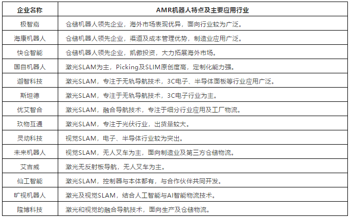 中國市場,目前超過60%的工業(yè)應(yīng)用移動機(jī)器人本體企業(yè)都擁有AMR產(chǎn)品,且企業(yè)數(shù)量還在不斷增多中,這其中有專注于自然導(dǎo)航產(chǎn)品的企業(yè),也有傳統(tǒng)的AGV、倉儲機(jī)器人廠商及物流集成商等。
