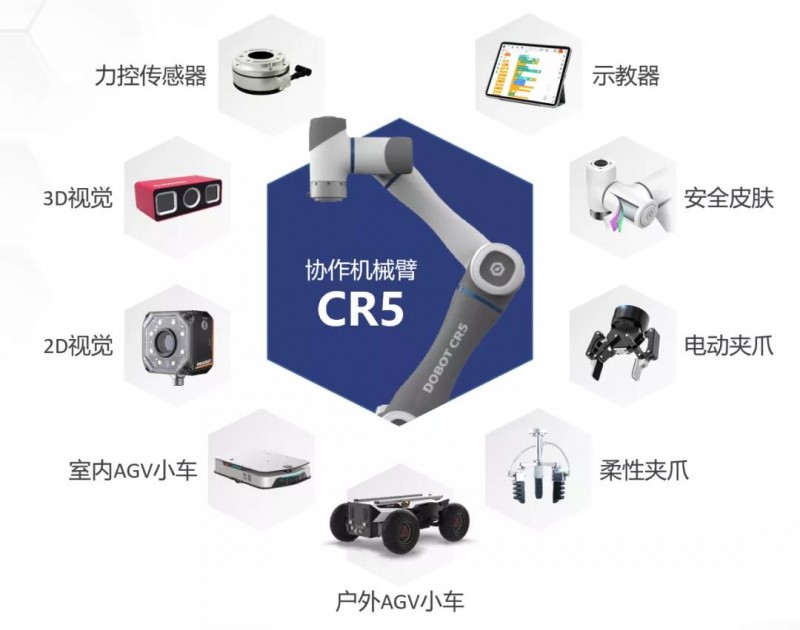 作為計劃的一部分,越疆推出了展翅、凌云1.0、凌云2.0三大套件組合,套件包括CR5協(xié)作機器人、示教器、安全皮膚、2D和3D視覺,柔性夾爪、電動夾爪、力傳感器、戶外/室內(nèi)GV小車等基礎(chǔ)單元,適配工業(yè)、商業(yè)、醫(yī)療、農(nóng)業(yè)等多種場景應(yīng)用創(chuàng)新方案的搭建。