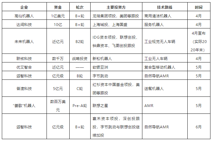 除工業(yè)應(yīng)用移動(dòng)機(jī)器人外,二季度獲得融資的還有聚焦于清潔機(jī)器人應(yīng)用的高仙、云端服務(wù)機(jī)器人企業(yè)達(dá)闥科技以及送餐機(jī)器人企業(yè)普渡科技,疫情原因,商用移動(dòng)機(jī)器人落地速度加快,經(jīng)過前期的落地應(yīng)用,部分技術(shù)成熟的企業(yè)脫穎而出,也得到了資本方的認(rèn)可。
