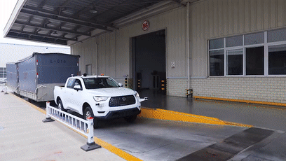 基于廠內(nèi)智能化物流設備的聯(lián)動,無人駕駛物流車還可進行自主裝卸貨、散料上貨等操作,同時基于拖斗精準運動學模型,它能夠?qū)崿F(xiàn)帶拖斗倒車,并保證倒車位置精度,實現(xiàn)拖斗精準對接裝卸平臺,提升裝卸貨效率。