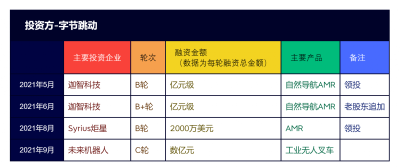 圖:移動機器人行業(yè) 字節(jié)跳動融資事件一覽