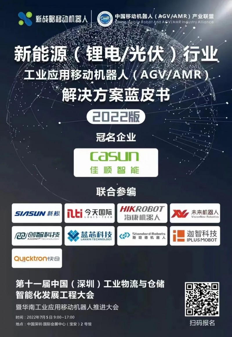 當(dāng)前,新能源領(lǐng)域,氫能產(chǎn)業(yè)發(fā)展還處于早期,但鋰電及光伏產(chǎn)業(yè)已經(jīng)相對(duì)成熟,生產(chǎn)環(huán)節(jié)的自動(dòng)化程度也在不斷提高,移動(dòng)機(jī)器人作為自動(dòng)化搬運(yùn)設(shè)備,也陸續(xù)在鋰電及光伏行業(yè)落地應(yīng)用。2022年7月5日,中國移動(dòng)機(jī)器人(AGV/AMR)產(chǎn)業(yè)聯(lián)盟將發(fā)布 《新能源行業(yè)用移動(dòng)機(jī)器人(AGV/AMR)解決方案藍(lán)皮書(2022版)》,敬請(qǐng)期待!